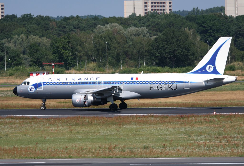 Air France "Retro" A 320-211 F-GFKJ nach der Landung in Berlin-Tegel am 31.07.2010