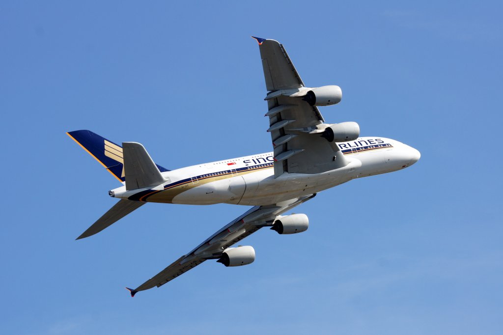 Ein Airbus A-380-841 von Singapore Airlines mit der Kennung 9V-SKE aufgenommen am 03.10.2010 auf dem Flughafen Zürich