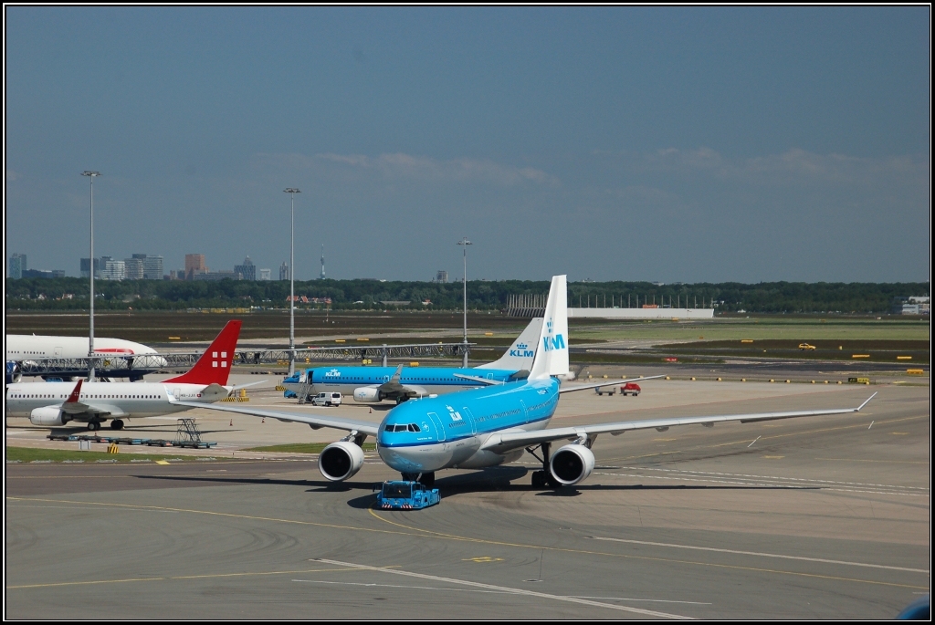 Ein Flugzeug von KLM (Airbus A330-200?) war am 16. Juni 2010 unterwegs auf dem Flughafen Schiphol / Amsterdam (AMS).