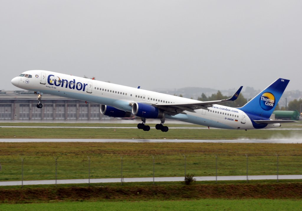 Eine Boeing 757-330 von Condor mit der Kennung D-ABOK aufgenommen am 16.10.2010 auf dem Flughafen Stuttgart