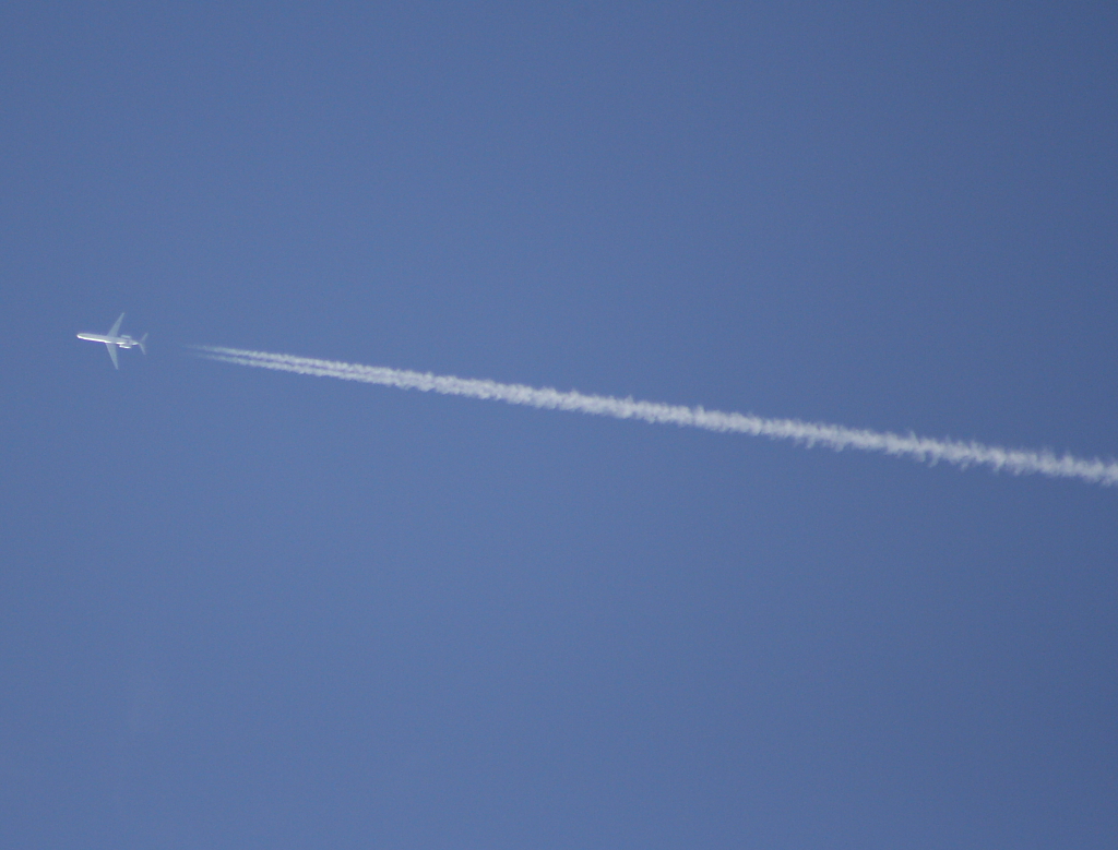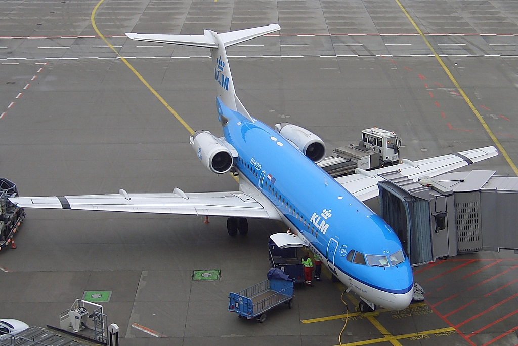 Eine Fokker 100 von Contact Air in Reiseflughöhe über Karlsruhe