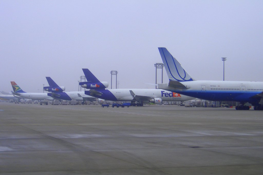 Fed-Ex-, South African Airways- und United Airlines-Maschinen stehen auf dem Frankfurter Flughafenvorfeld (06.02.10)