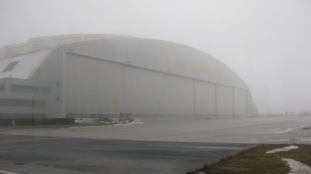 Lufthansa Technik-Wartungshalle im Nebel in Frankfurt am Main (06.02.10)