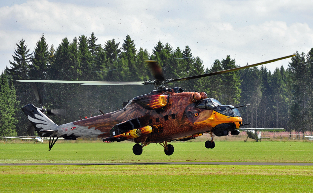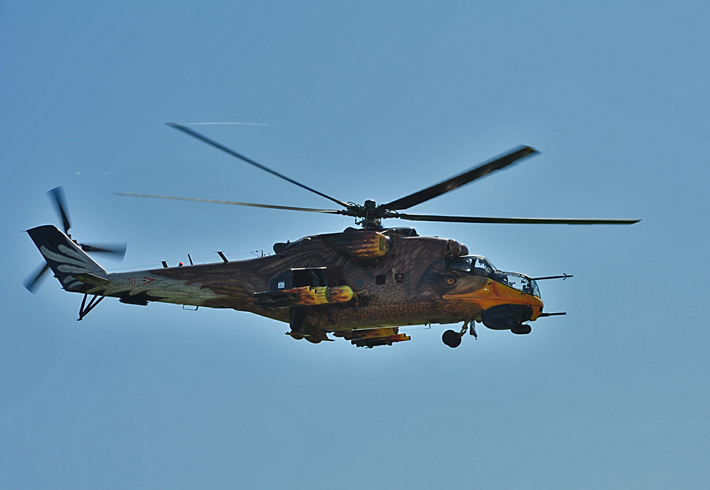 Mil Mi-24 Hind aus Ungarn, "Nr. 716", kurz vor dem Aufsetzen beim Flugtag in Breitscheid - 21.08.2010