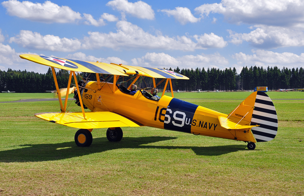 Boeing PT-17 Stearman, Trainer in US-Navy-Lackierung, auf dem Flugtag in Breitscheid 21.08.2010