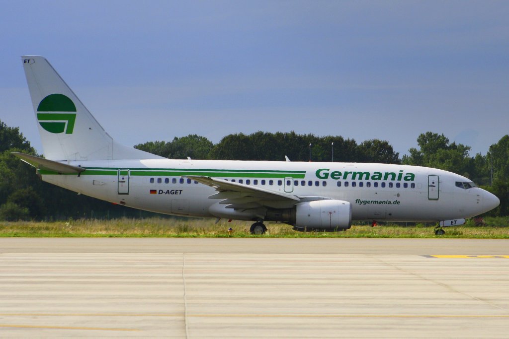 Germania Airlines-Boeing 737-700 beim Taxiing in Karlsruhe/Baden-Baden am 26.08.10
