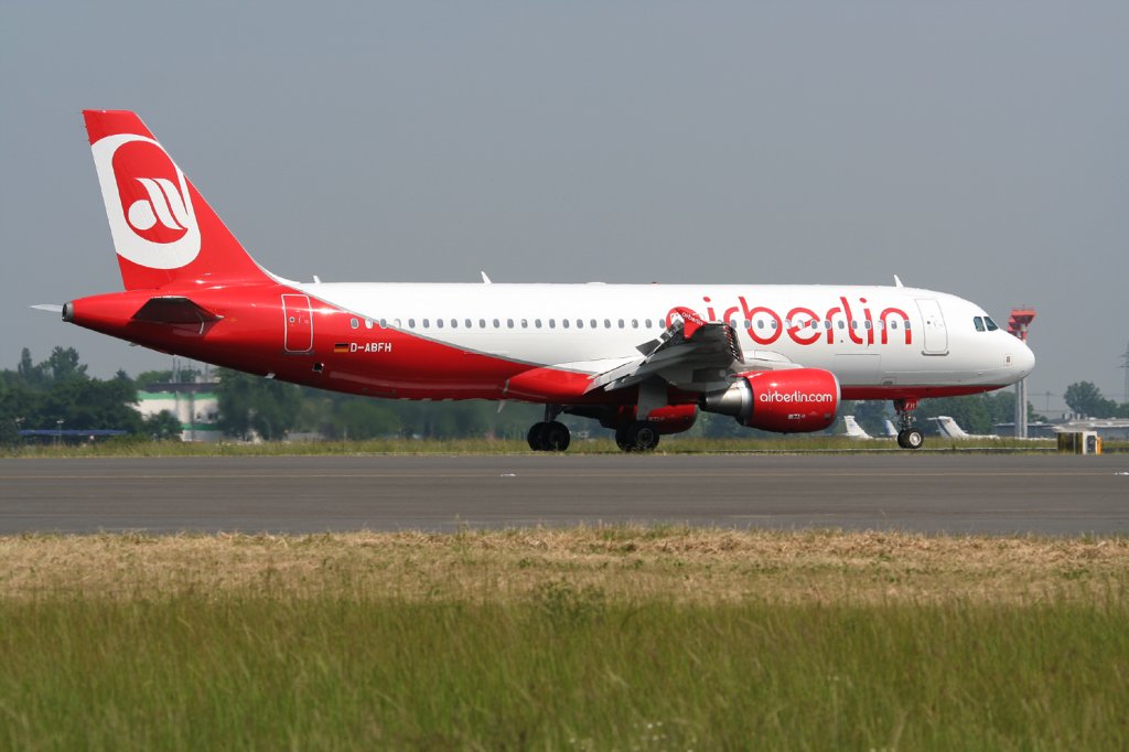 Air Berlin A 320-214 D-ABFH nach der Landung in Berlin-Schönefeld am 10.06.2010