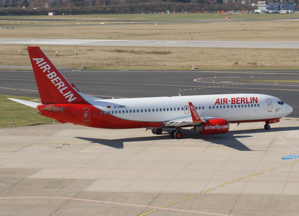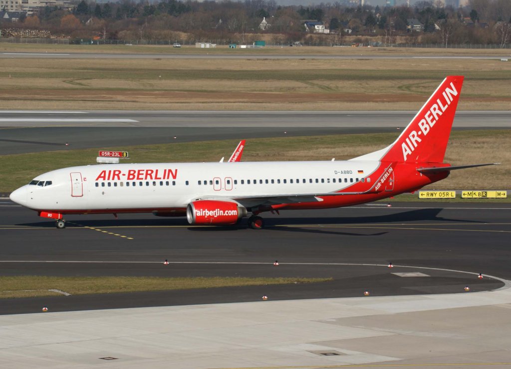 Air Berlin, D-ABBD (mittlere AB-Lackierung), Boeing 737-800 WL (Bergkamen/Ruhr 2010), 2010.03.03, DUS, Düsseldorf, Germany