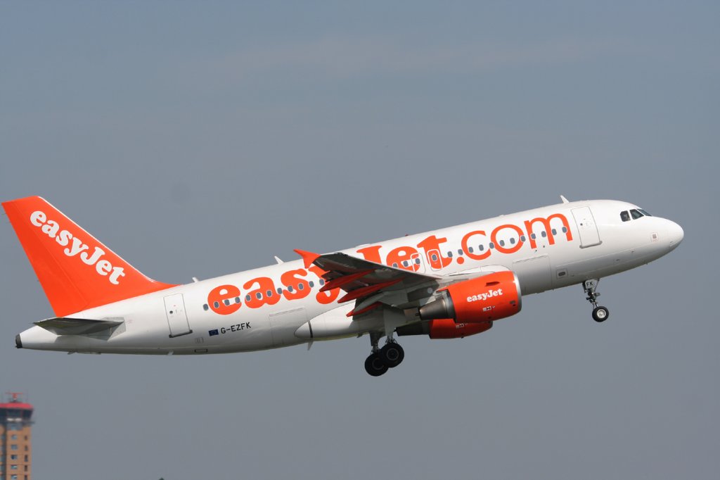 Easyjet A 319-111 G-EZFK beim Start in Berlin-Schönefeld am 10.06.2010