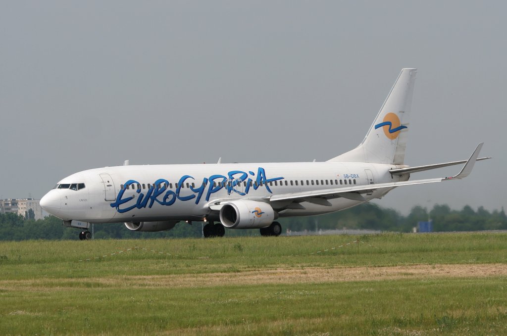 Eurocypria B 737-8Q8 5B-DBX kurz vor dem Start in Berlin-Schönefeld am 10.06.2010
