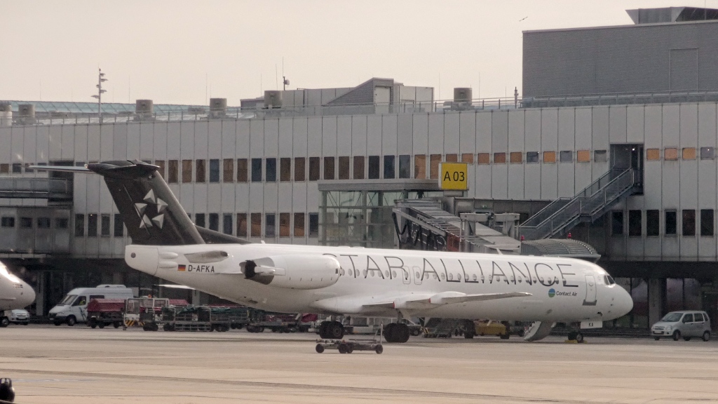 Fokker 100 D-AFKA der Contact Air im STAR ALLIANCE Design in DUS.