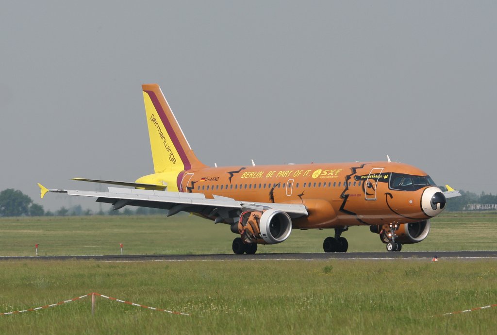 Germanwings A 319-112 D-AKNO "Berlin-Bearbus" beim Start in Berlin-Schönefeld am 10.06.2010