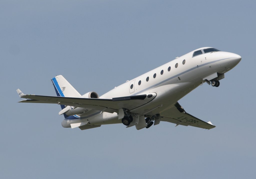 Global Jet Luxembourg IAI Gulfstream G 200 Galaxy LX-GRS beim Start in Berlin-Schönefeld am 10.06.2010