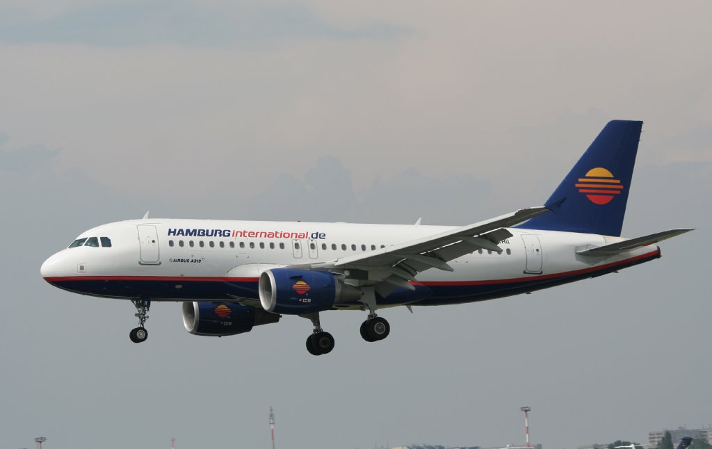 Hamburg International A 319-111 D-AHII kurz vor der Landung in Berlin-Schönefeld am 10.06.2010