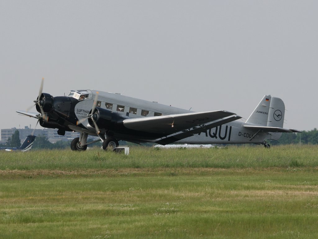 Lufthansa Traditionsflug Junkers Ju-52 D-CDLH (D-AQUI) kurz vor dem Start in Berlin-Schönefeld am 10.06.2010