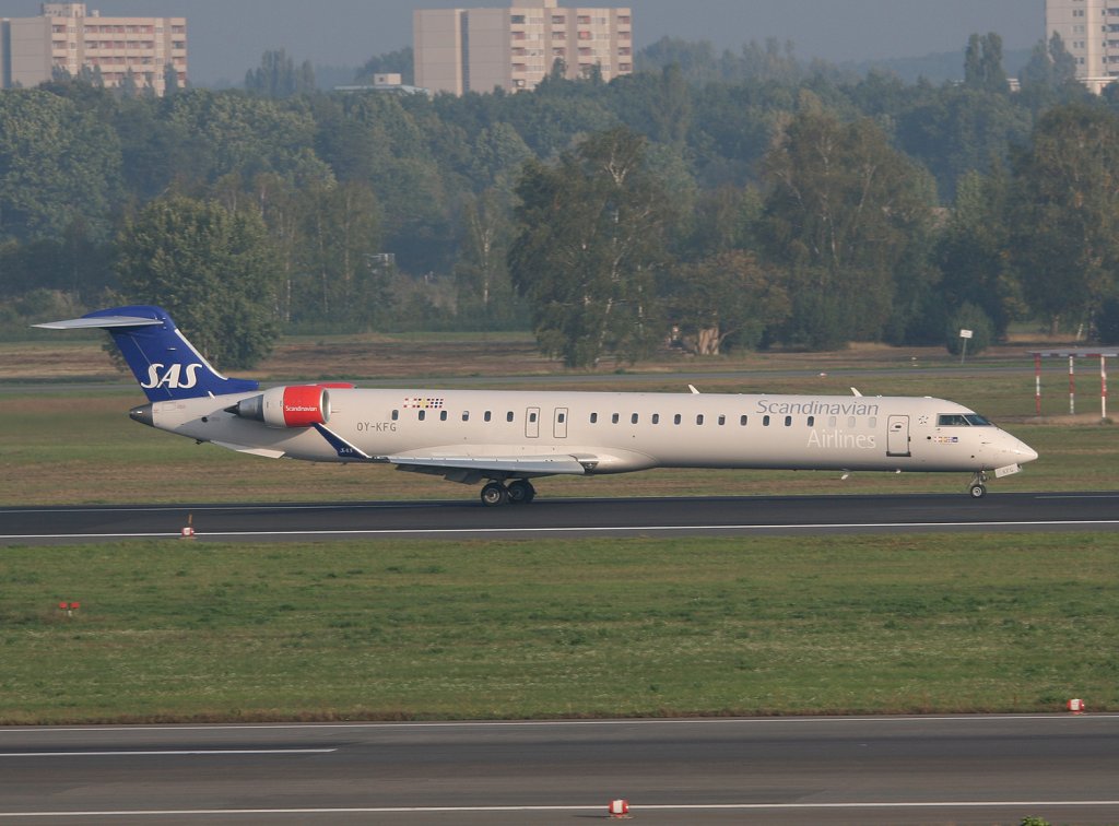 SAS Canadair Regjet CRJ900 OY-KFG nach der Landung in Berlin-Tegel am 02.10.2010