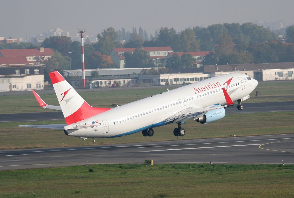 Austrian B 737-8Z9 OE-LNR beim Start in Berlin-Tegel am 09.10.2010