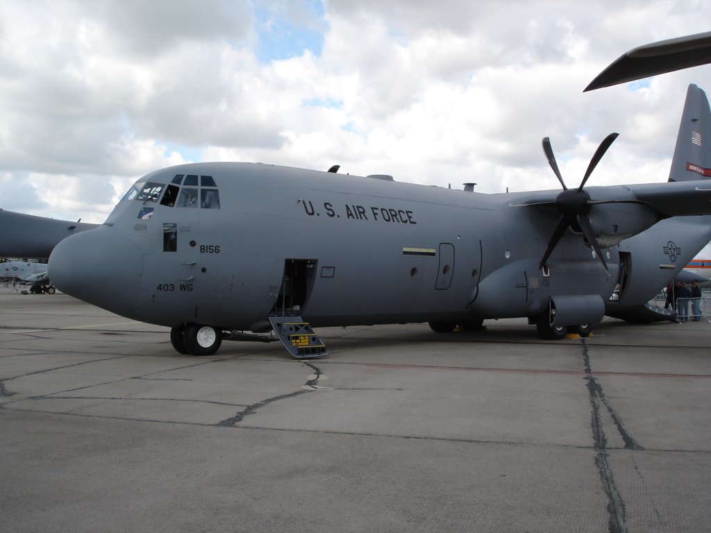 Lockheed C 130 J "Hercules, amerikanischer Militärtransporter, Erstflug 1954, wird bis heute in modernisierter Form gebaut, bisher über 2200 Stück, ausgestellt zur ILA 2006 in Berlin