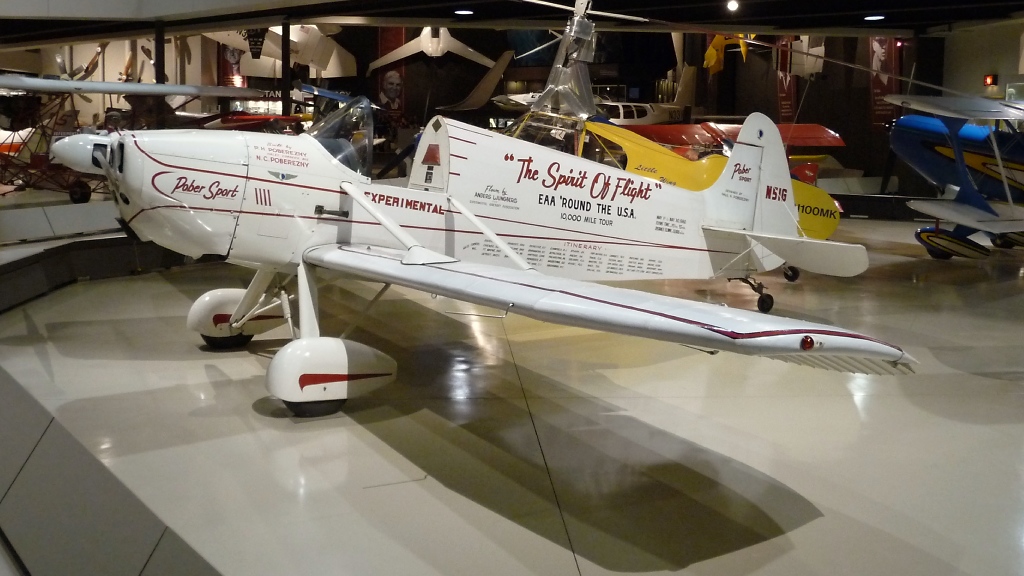 Die "Pober Sport P-5" wurde 1959 vom EAA Präsidenten Paul Poberezny entworfen und gebaut. 1960 machte sie in 30 Tagen eine 10.000 Meilen-Tour zu allen damals existierenden EAA-Ortsverbänden und demonstrierte damit die Zuverlässigkeit von Amateurflugzeugen. Zu sehen im EAA Museum Oshkosh, WI (3.12.10).