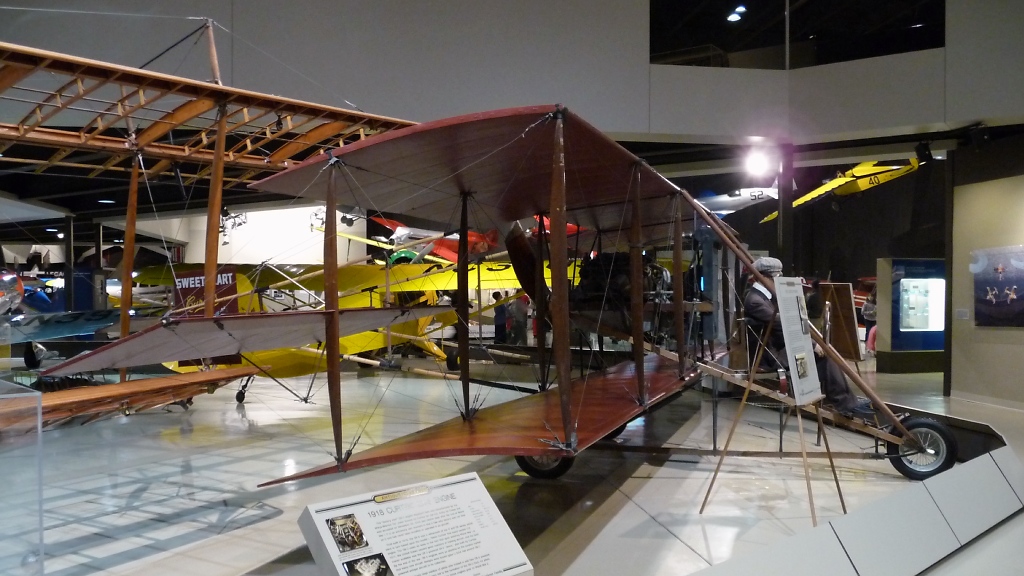 Diese "Curtis Pusher" wurde 1912 gebaut, kostete damals $5000, und wurde zur Pilotenausbildung genutzt. 1940 in einer Scheune gefunden, kostete das Wrack nur noch $15. Nach 10-jährigem Wiederaufbau und mit einem neuen OX-5-Motor flog die Maschine wieder im Jahre 1966, 53 Jahre nach dem letzten Flug. Zu sehen im EAA Museum Oshkosh, WI (3.12.10).