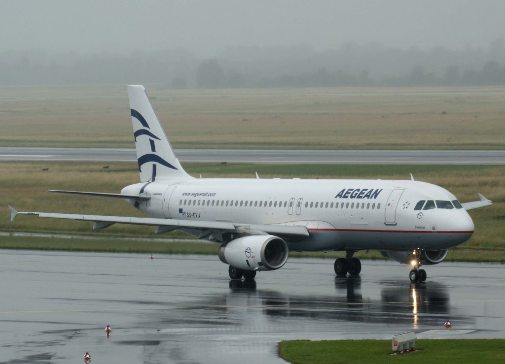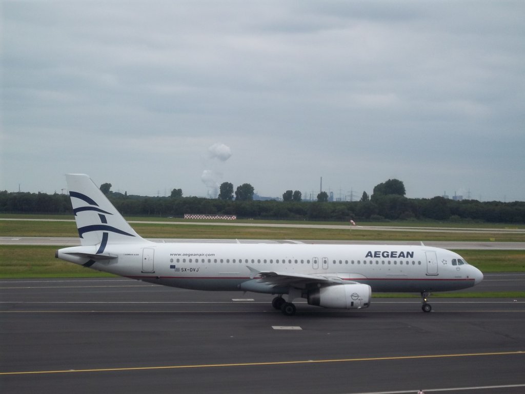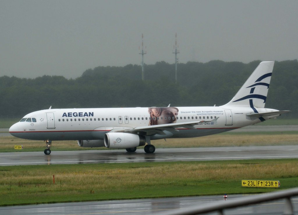 Aegean Airlines, SX-DVU "Pheidias", Airbus A 320-200 (Akropolis-Sticker auf der linken Seite), 20.06.2011, DUS-EDDL, Düsseldorf, Germany