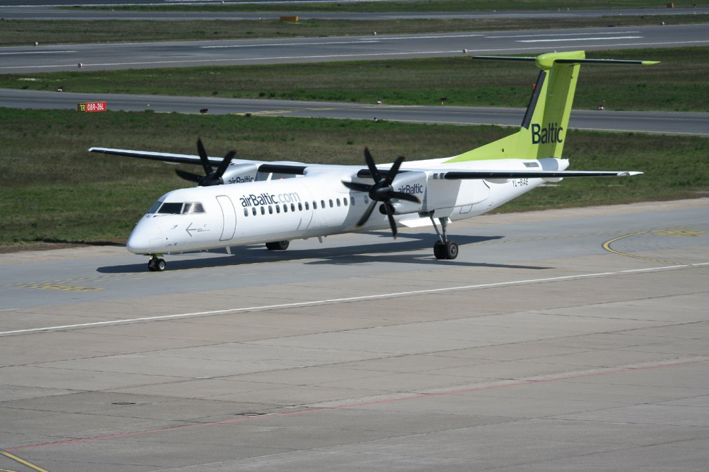 Air Baltic De Havilland Canada DHC-8-402Q YL-BAE beim Start in Berlin-Tegel am 01.05.2011