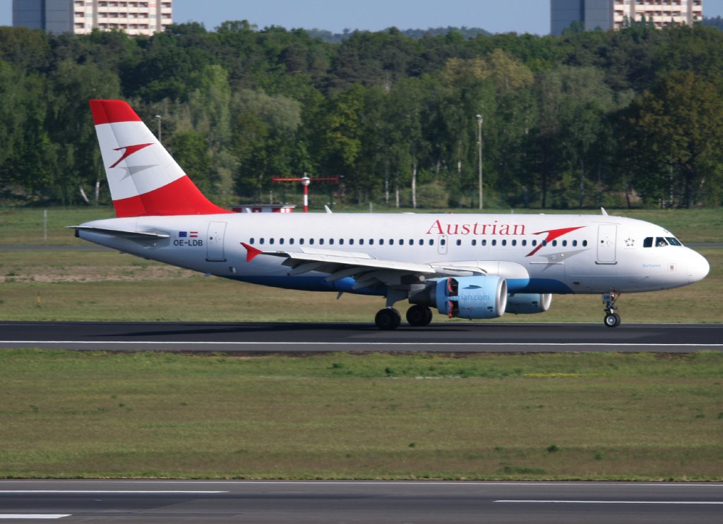 Austrian A 319-112 OE-LDB nach der Landung in Berlin-Tegel am 01.05.2011