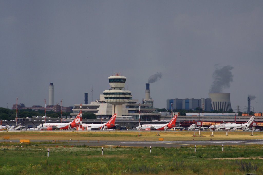 Der Flughafen Berlin-Tegel am 18.06.11 vor einem aufziehenden, großen Regenschauer