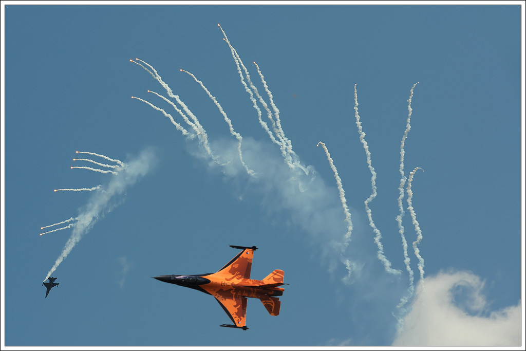 F-16 AM Fighting Falcon der belgischen und holländischen Luftwaffe, wobei die belgische Maschine ihr Display am Vormittag flog, die holländische am Nachmittag ;-)
