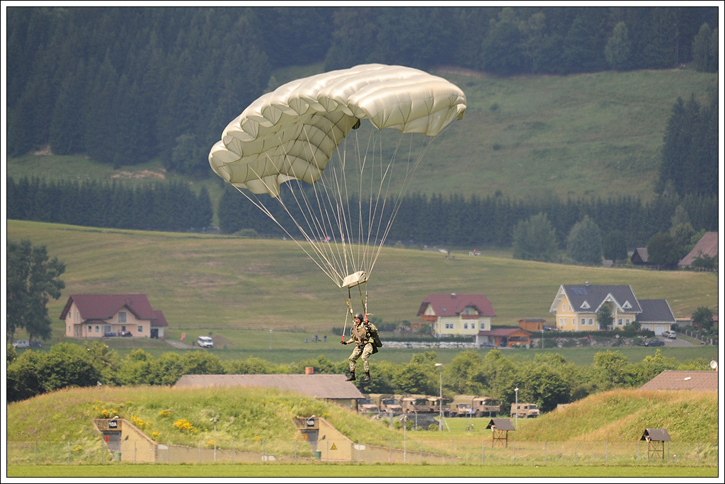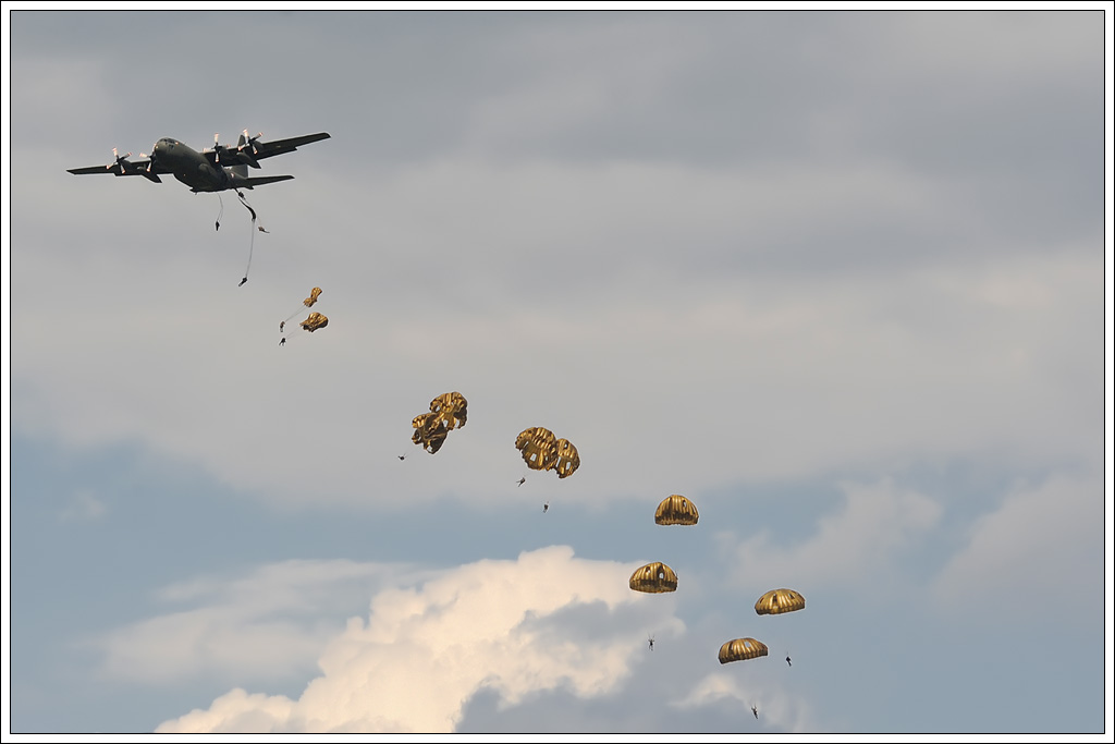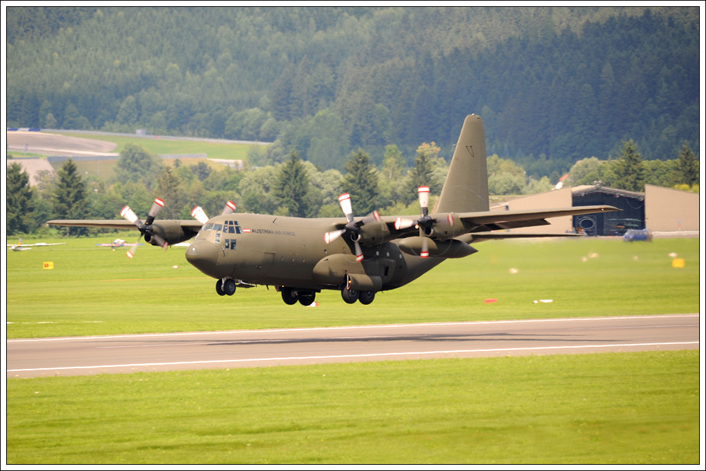 Lockheed C-130 "Hercules" des ÖBH bei einer Gefechtsvorführung der Luftunterstützungsbrigade anlässlich der Airpower 2011 am 1.7.2011.