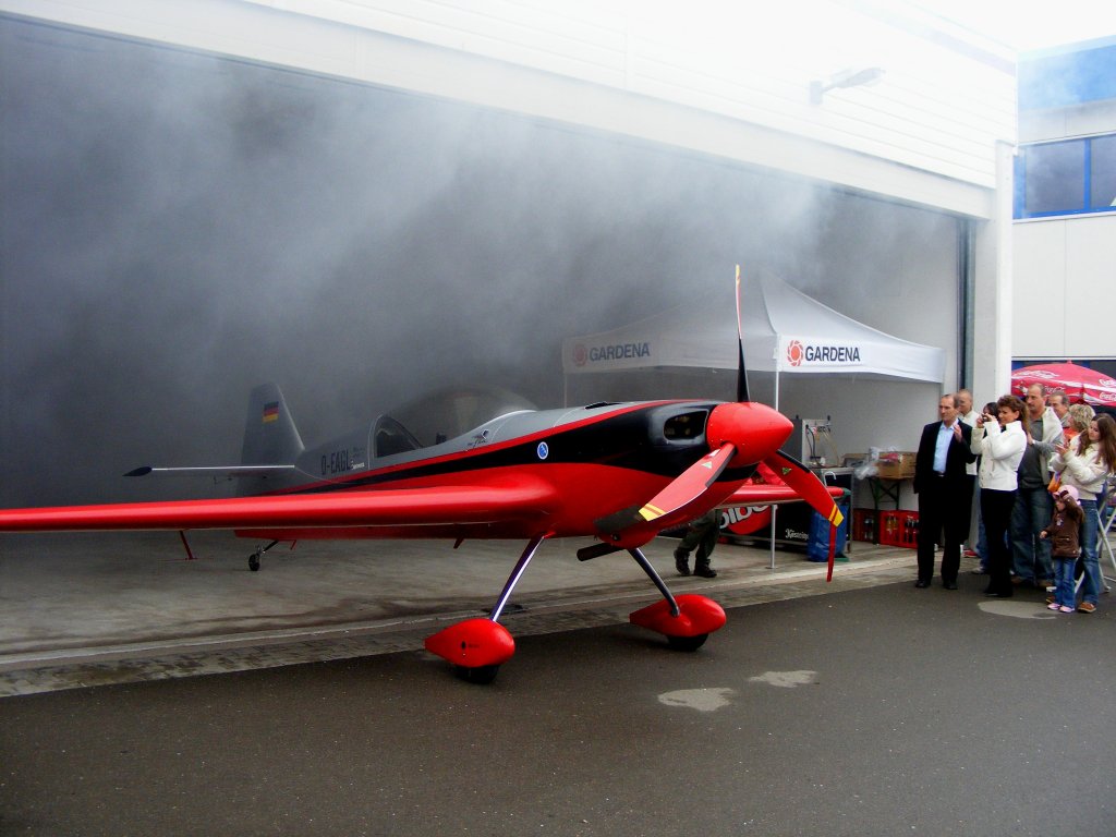 Giles GB 202 D-EAGL beim feierlichen "ROLL OUT" am 23.5.2008 auf dem Flugplatz Gera (EDAJ).Der Flieger wurde von Dr.Gerd Beierlein in über 4000 Arbeitsstunden mit einigen "Verfeinerungen" aufgebaut.