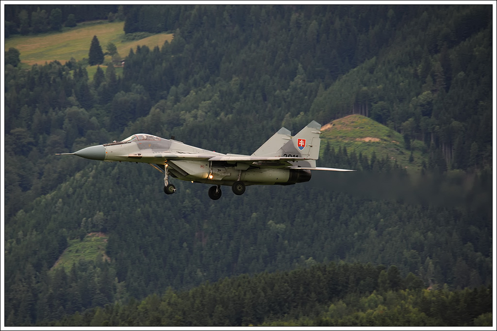 MIG-29 A FULCRUM der slowakischen Luftwaffe beim Landeanflug in Zeltweg am 30.6.2011 einen Tag vor dem ersten offiziellen Tag der Airpower 2011.