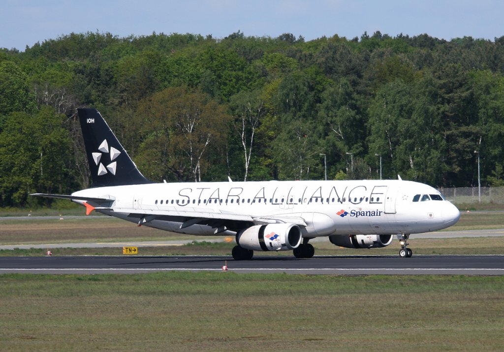 Spanair A 320-232 EC-IOH auf dem Weg zum Start in Berlin-Tegel am 01.05.2011