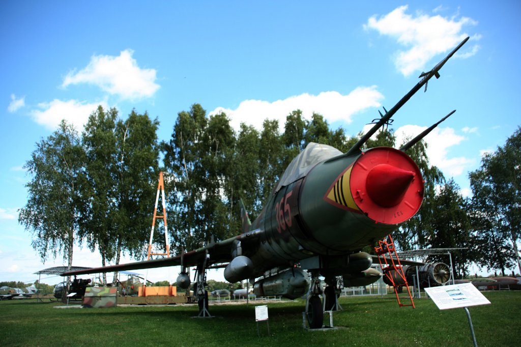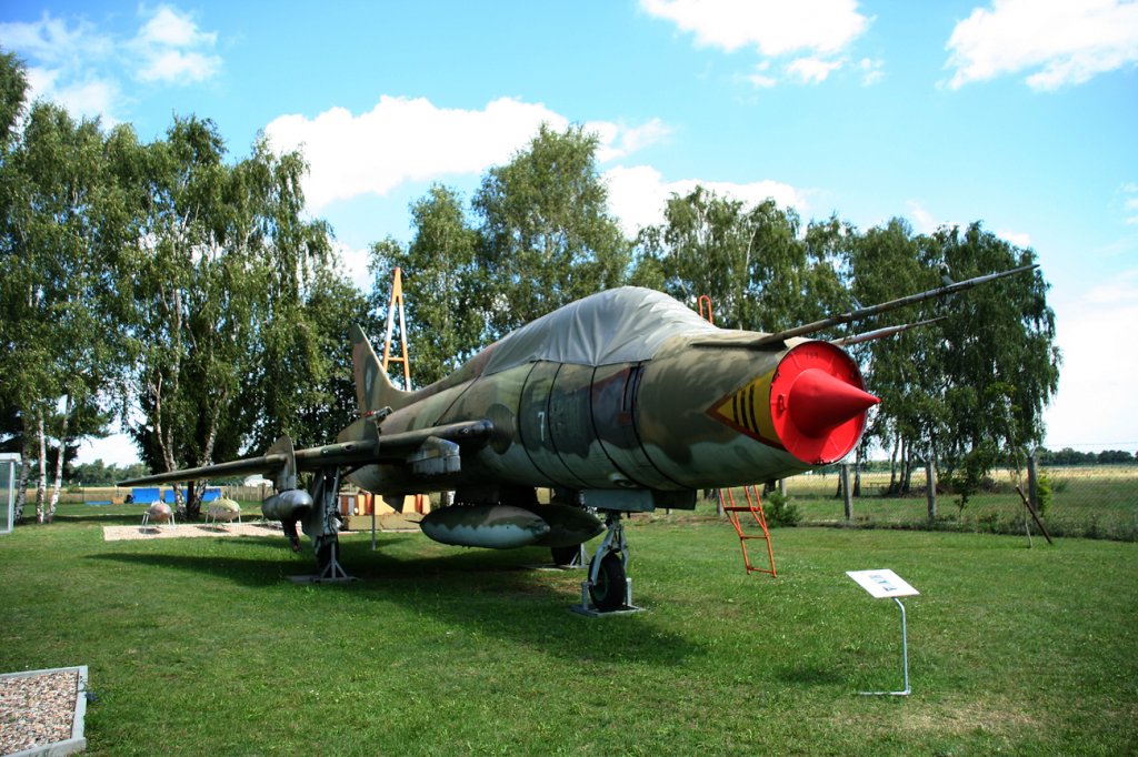 Frontansicht der NVA Suchoi Su-22M4 365 am 24.07.2011 im Flugplatzmuseum Cottbus