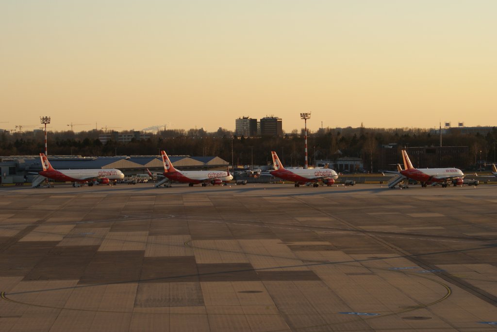 4 Air Berlin Maschinen am Düsseldorfer Flughafen am 07.03.2011