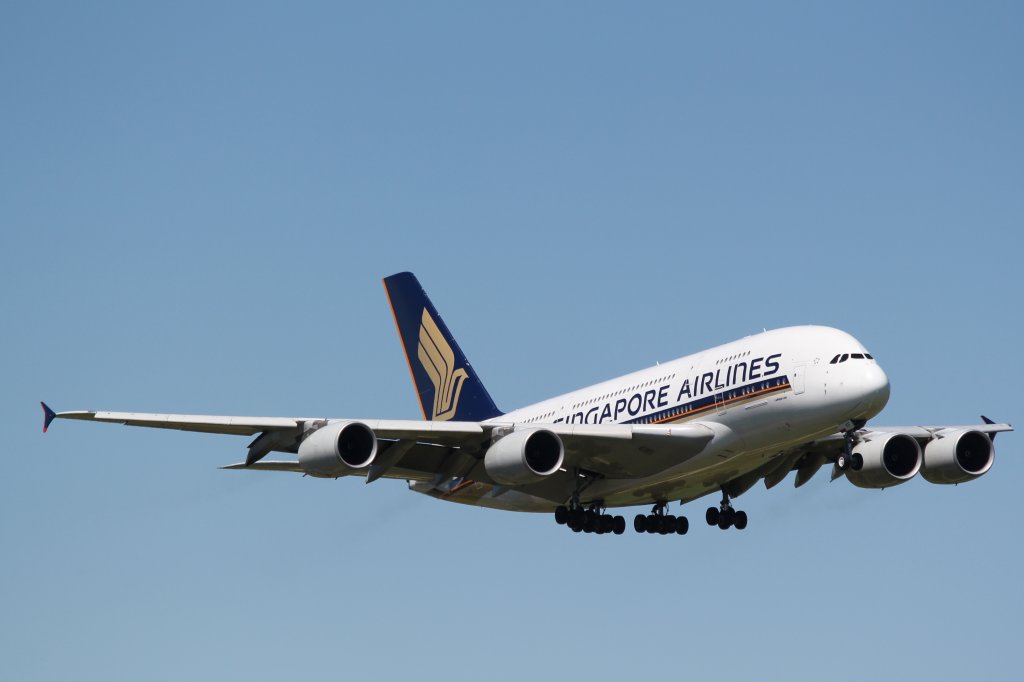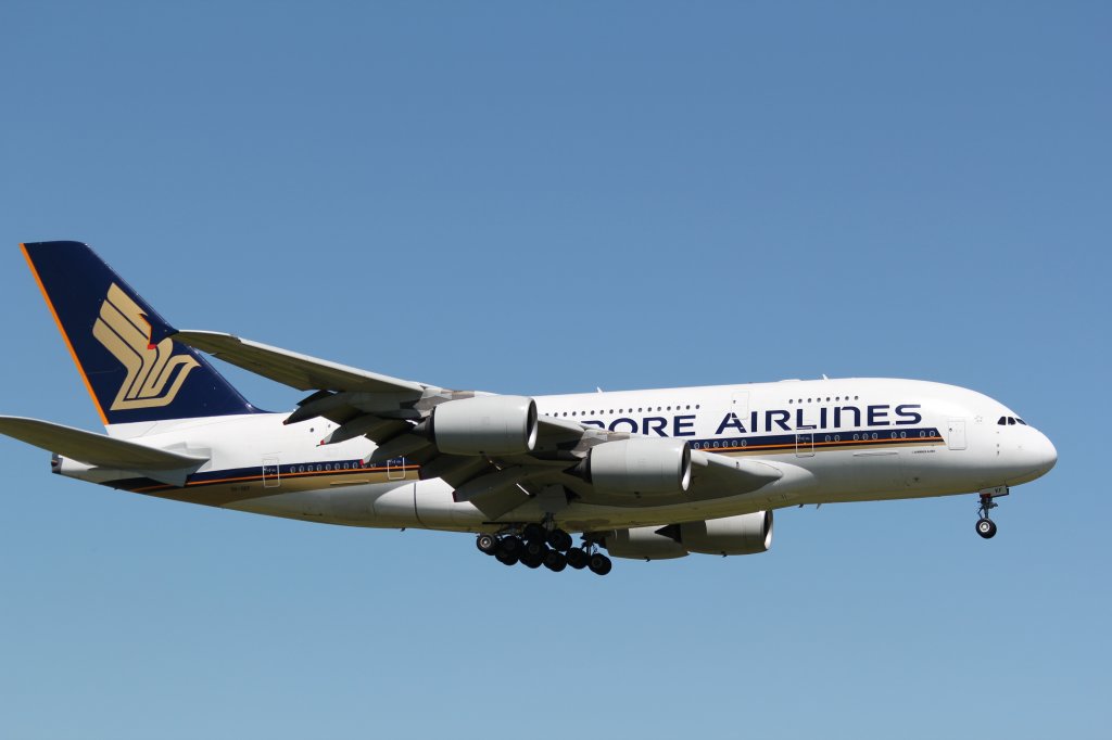 A380 von Singapore Airlines im Anflug auf Zürich-Kloten am 18.5.2011.