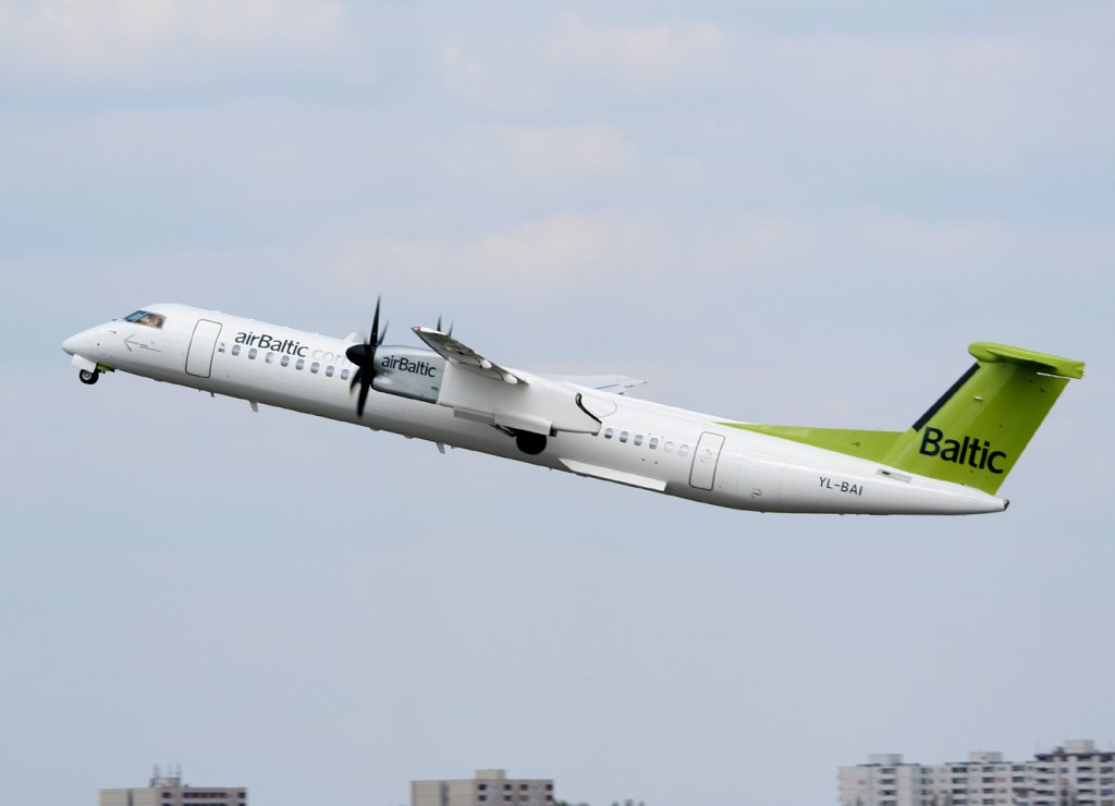 Air Baltic De Havilland Canada DHC-8-402Q YL-BAI beim Start in Berlin-Tegel am 16.04.2011