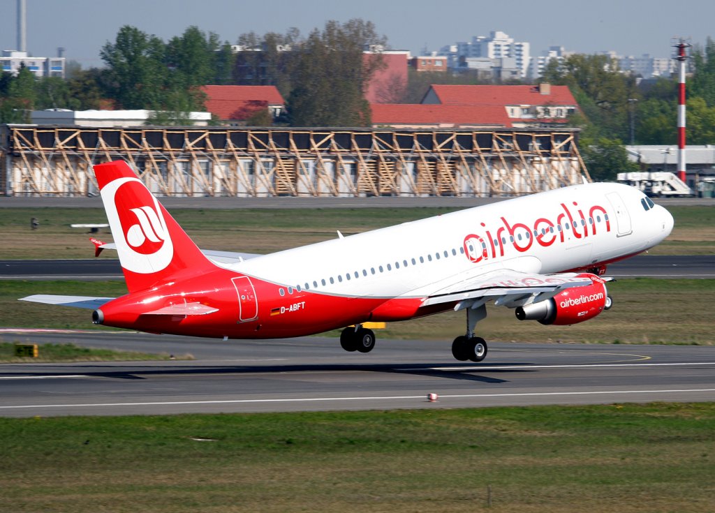 Air Berlin A 320-214 D-ABFT beim Start in Berlin-Tegel am 21.04.2011
