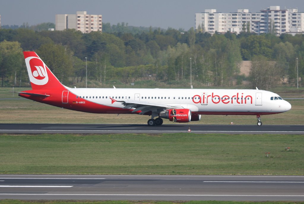 Air Berlin A 321-211 D-ABCC nach der Landung in Berlin-Tegel am 21.04.2011