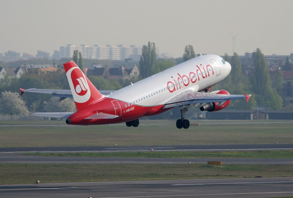 Air Berlin(Belair) A 319-112 HB-IOX beim Start in Berlin-Tegel am 21.04.2011