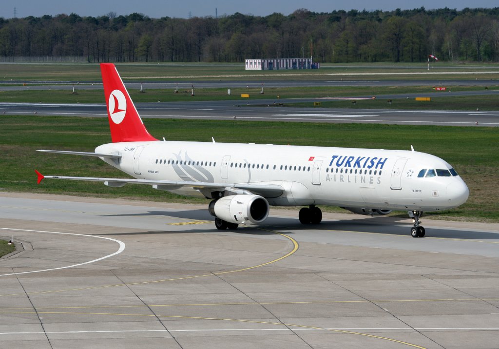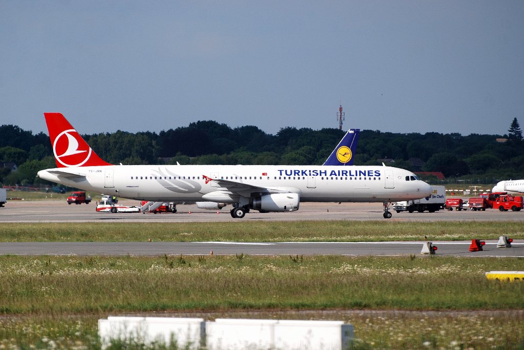 Airbus A321 TC-JRR der Turkish Airlines rollt nach der Landung in Hamburg Fuhlsbüttel zum Gate aufgenommen am 30.05.11