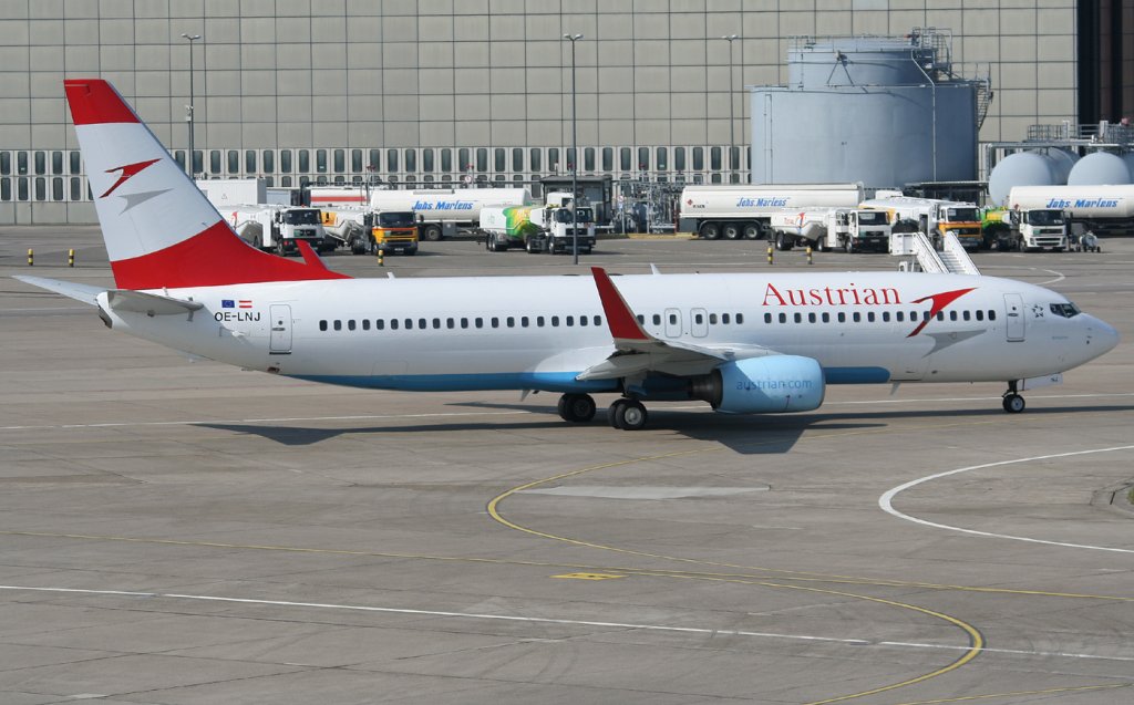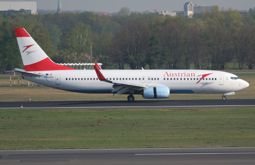 Austrian B 737-8Z9 OE-LNJ auf dem Weg zum Start in Berlin-Tegel am 21.04.2011