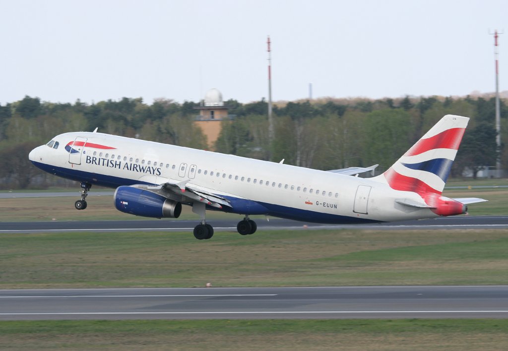 British Airways A 320-232 G-EUUN beim Start in Berlin-Tegel am 16.04.2011