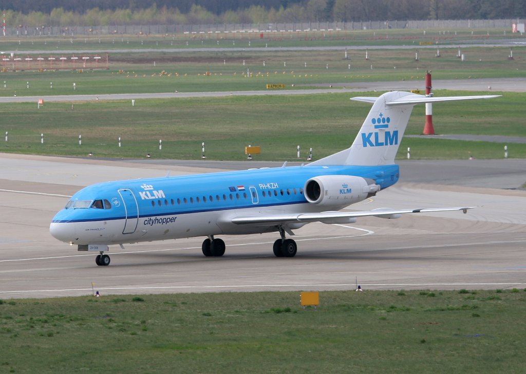 KLM-Ciyhopper Fokker 70 PH-KZH bei der Ankunft in Berlin-Tegel am 16.04.2011