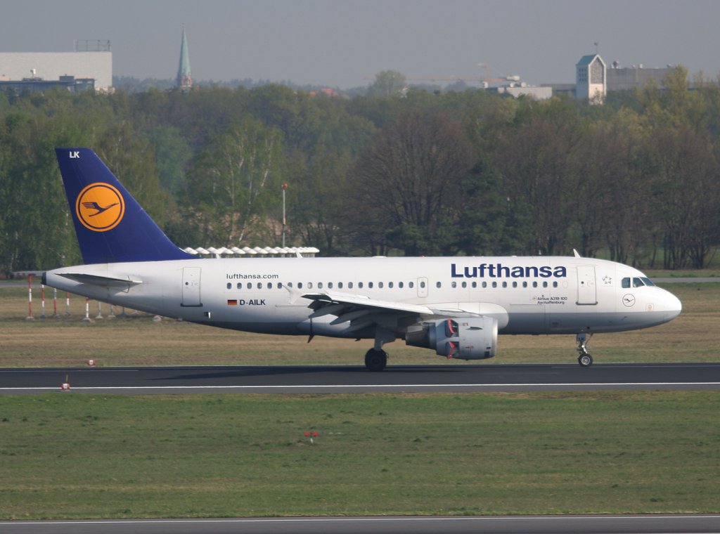 Lufthansa A 319-114 D-AILK "Aschaffenburg" nach der Landung in Berlin-Tegel am 21.04.2011