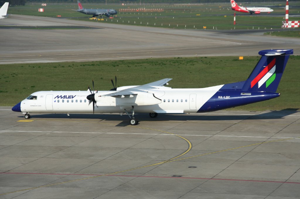Malev De Havilland Canada DHC-8-402Q HA-LQC auf dem Weg zum Start in Berlin-Tegel am 21.04.2011