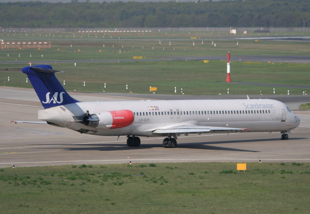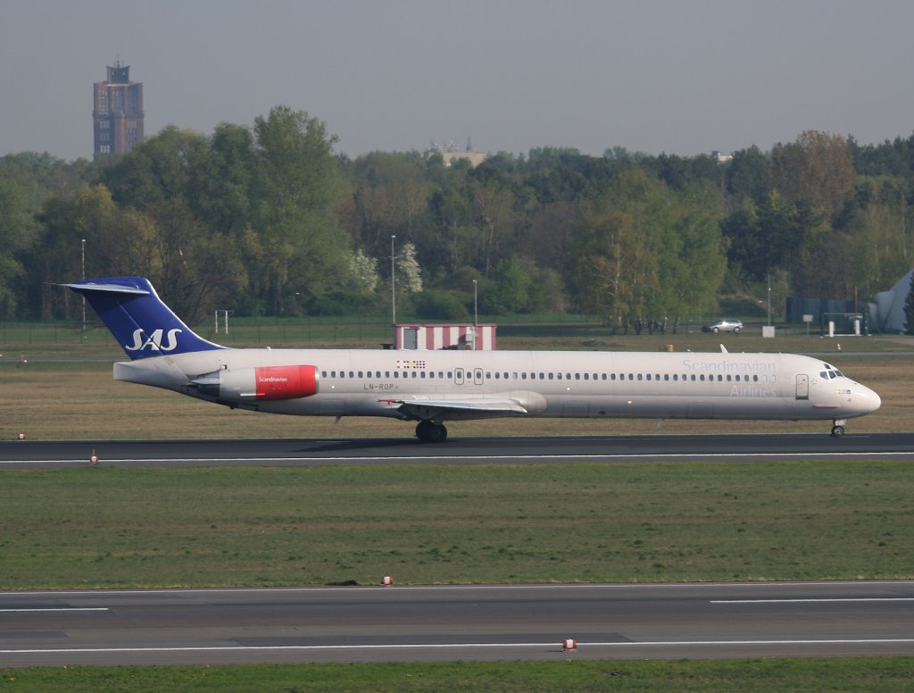 SAS MD 82 LN-ROP auf dem Weg zum Start in Berlin-Tegel am 21.04.2011