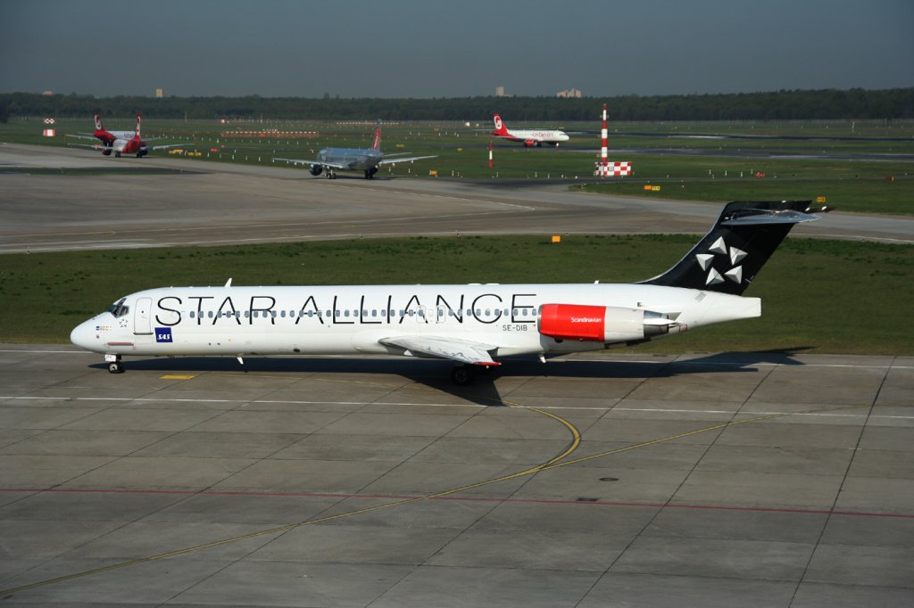 SAS MD 87 SE-DIB auf dem Weg zum Start in Berlin-Tegel am 21.04.2011