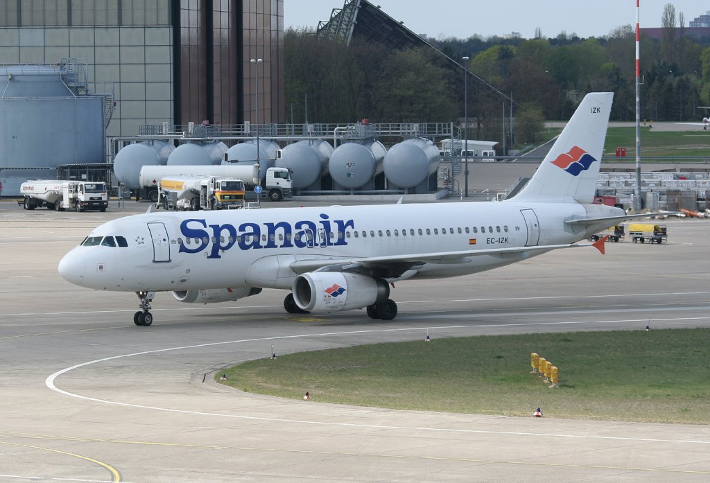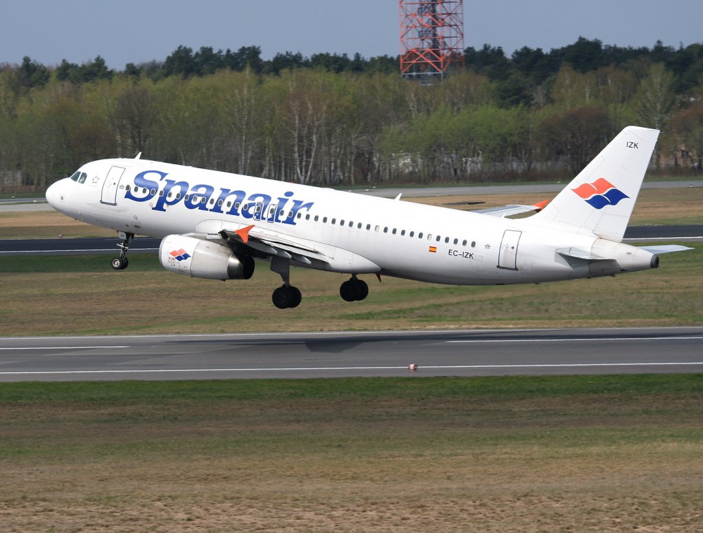 Spanair A 320-232 EC-IZK bei der Ankunft in Berlin-Tegel am 16.04.2011