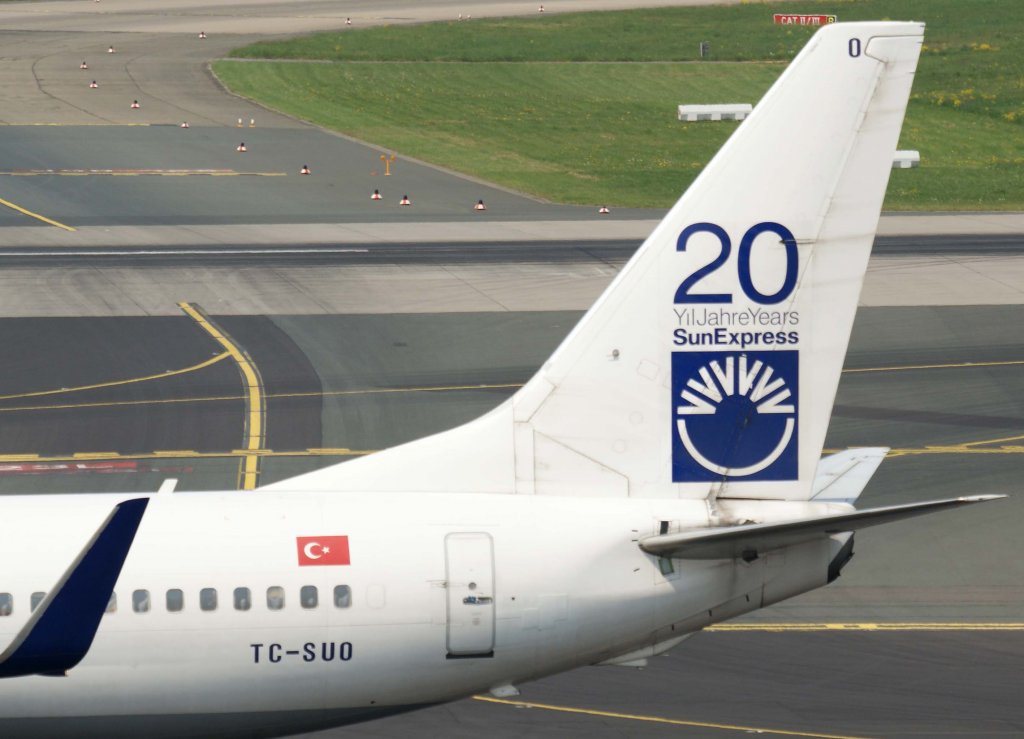 SunExpress, TC-SUO, Boeing 737-800 WL (Seitenleitwerk/Tail), 29.04.2011, DUS-EDDL, Düsseldorf, Germany